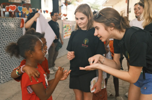 Thrive visitors join Dawahon kids in an impromptu dance.