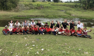 Katutubo Village school kids accompany Thrive visitors to a nearby river, where the community goes to wash clothes.