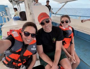 Gina, Louie, and Alice Gabel on the boat ride to Dawahon.