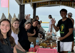 Day 3: The group embarked on the most adventurous leg of the journey — a two‑hour outrigger boat ride to Dawahon Island, in Bato, Leyte, a remote seaweed‑farming community. As we arrived, nearly the entire island gathered at the shoreline, waving, cheering, and welcoming the visitors with joy and delight. “The outpouring of the entire town showed how Thrive has become part of the community,” said Heidi. Inside classrooms and along the narrow walkways between stilt houses, donors met families who call the island home. “The kids treated us like superheroes, even though they have so little,” Etta said. “Their joy was contagious.”