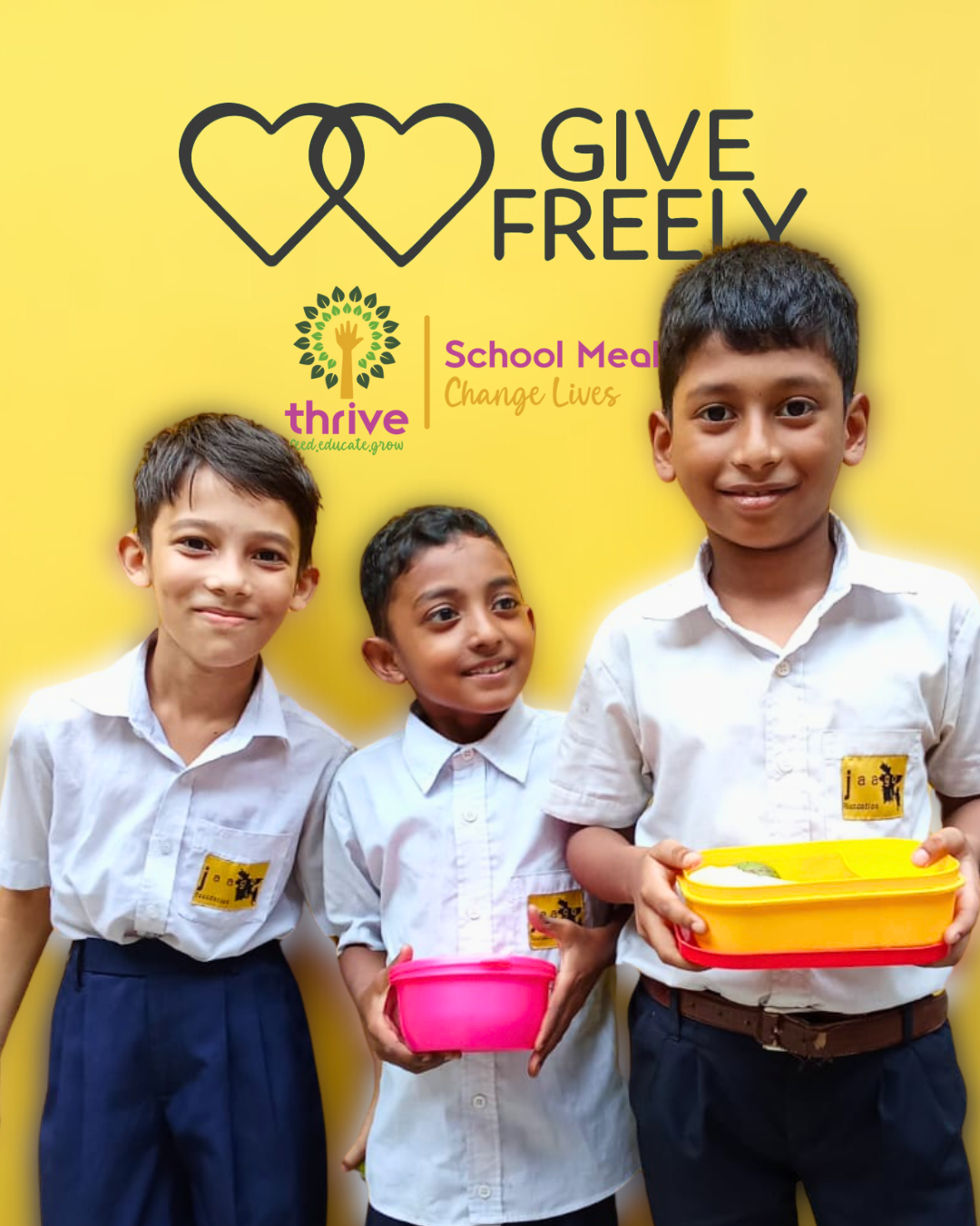 Every time you shop at over 10,000 shops through Give Freely, a portion of your purchase goes to Thrive—helping us provide meals to schoolchildren. Now, you can start with a FREE $10 donation gift card!