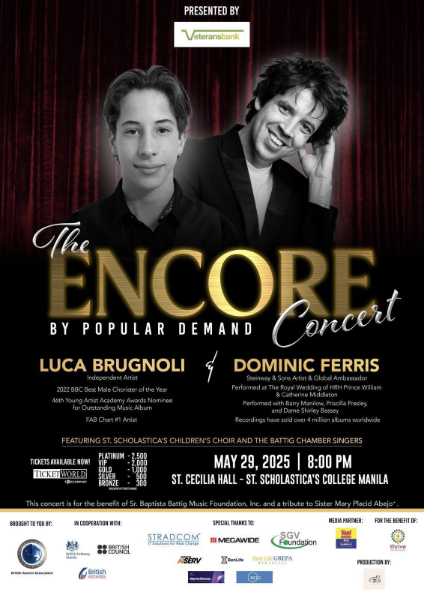 Thrive is proud to be one of the beneficiaries of The Encore Concert featuring Luca Brugnoli and Dominic Ferris — happening on May 29, 2025, at 8:00 PM at St. Cecilia Hall, St. Scholastica’s College, Manila.