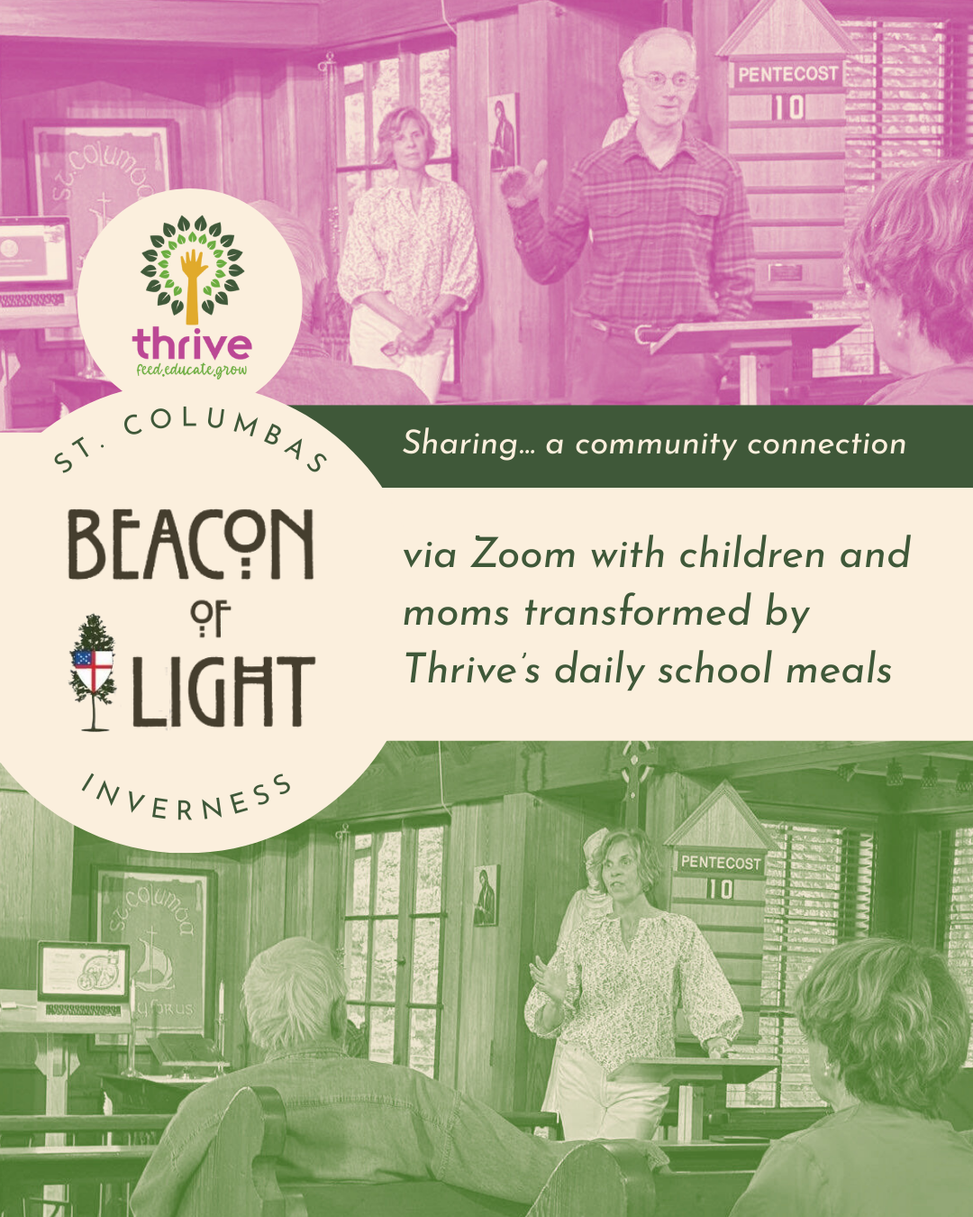 💡 Thrive kicked off the St. Columba’s Beacon of Light series. Sharing about Thrive’s global community, feeding kids daily school meals, and meeting the moms in the Philippines via Zoom who make the meals.🌍✨